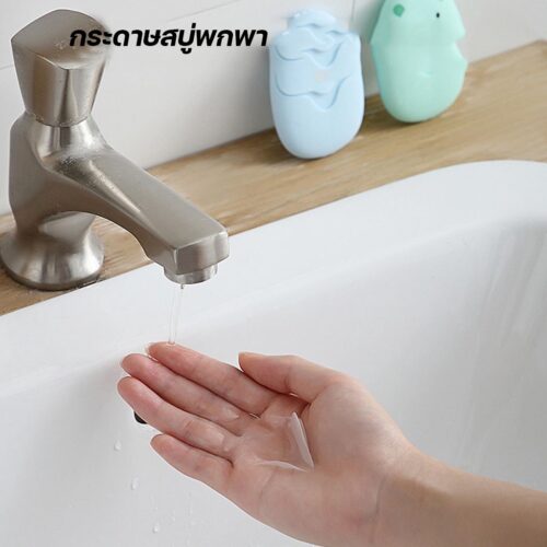 แผ่นสบู่ใช้แล้วทิ้ง 50 แผ่น พกพาง่าย สำหรับเดินทาง ละลายน้ำรวดเร็ว ใช้งานง่าย